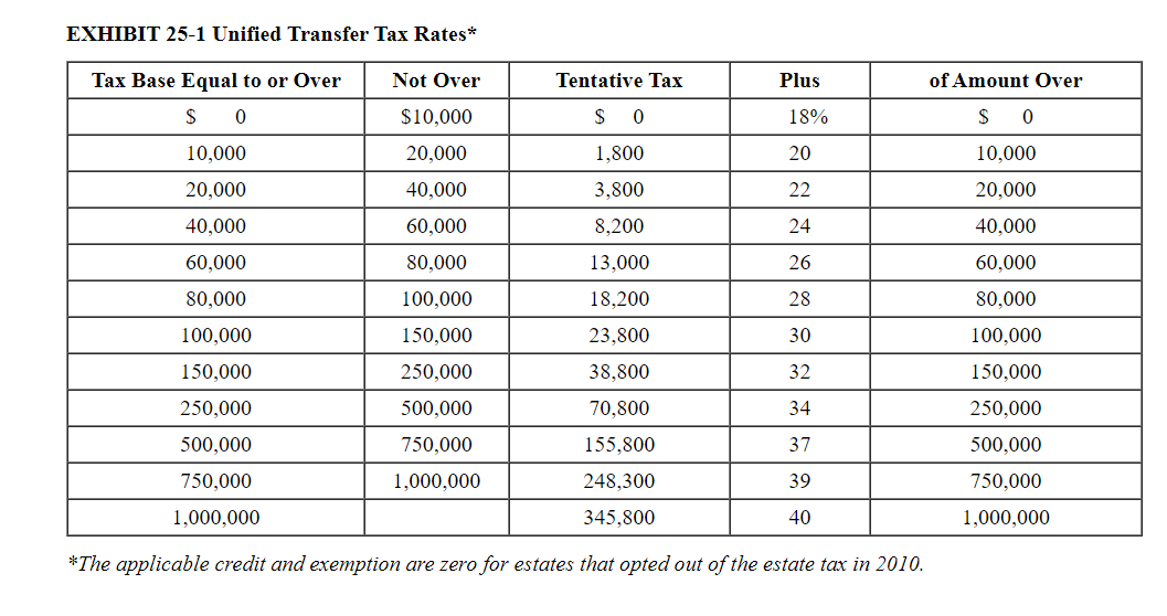 Solved Exhibit 25 1 Unified Transfer Tax Rates Not Over Chegg Com